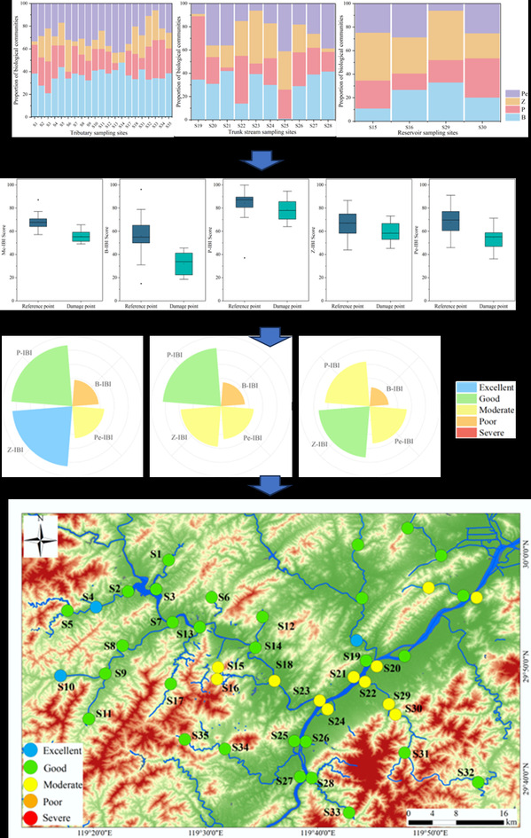 水生态健康评价对于维持生物多样性和指导水资源的可持续管理至关重要,本论文构建了基于多群落生物完整性指数(Mc-IBI)的评价体系,并以浙江省杭州市中部山区流域为研究对象,监测分析区域内鱼类、底栖动物、浮游生物和周丛藻类等生物群落的物种组成和时空分布特征,评价其水生态健康状况,在此基础上分析河流健康状态及其对水环境因子的响应机制,识别存在的主要问题,提出区域水污染防治和生态修复策略。研究成果可为水生态评价提供方法依据,对保障我省河流生态安全具有重要意义。