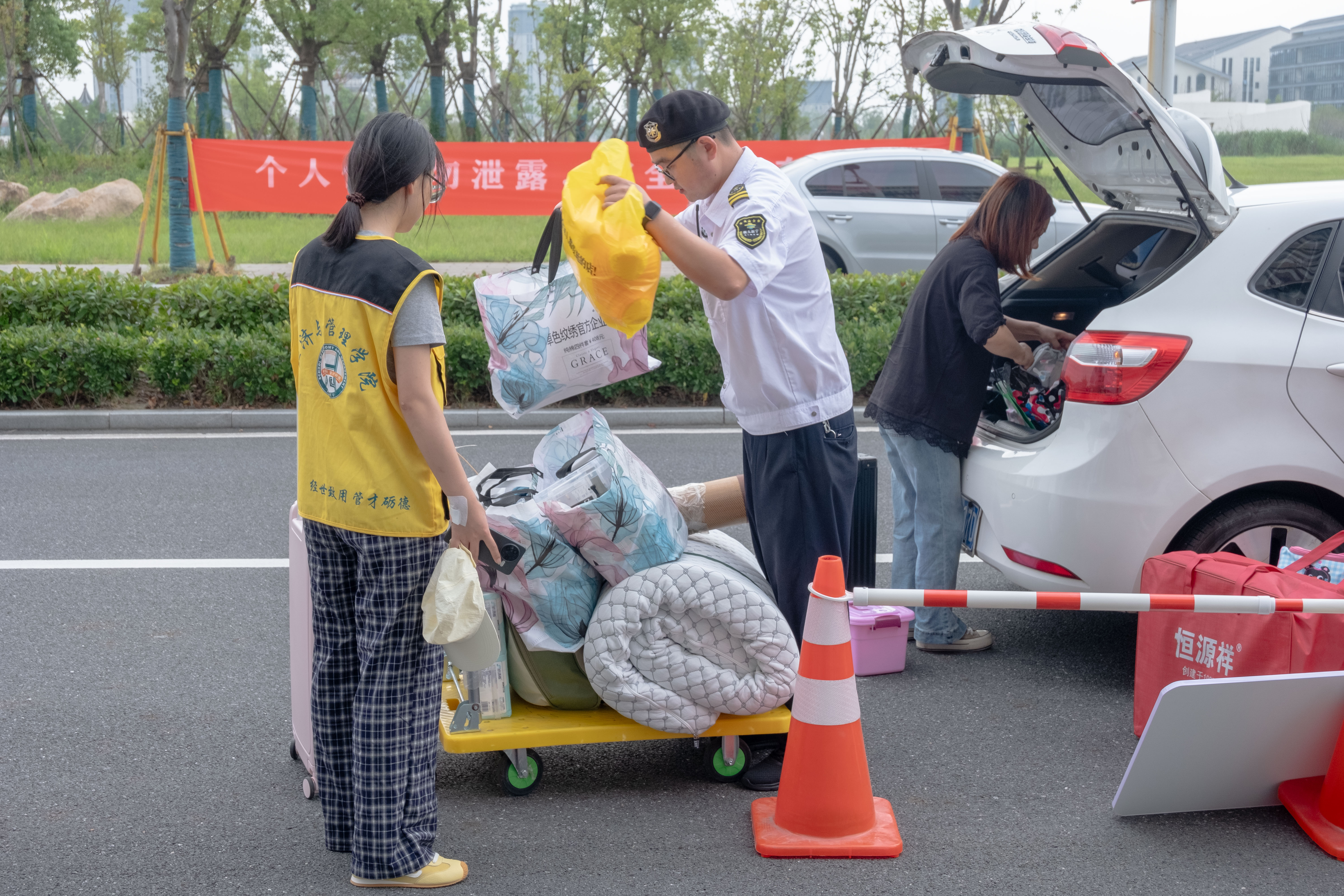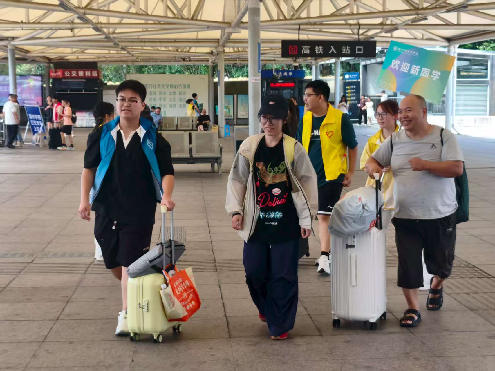 为保障新生顺利入学,学校各部门通力协作、周密筹备,全方位护航迎新工作开展。从湖州高铁站接站,到报到注册指导,再到校园指引、行李搬运,大量师生志愿者投身迎新工作,为新生及家长提供及时暖心的服务。
