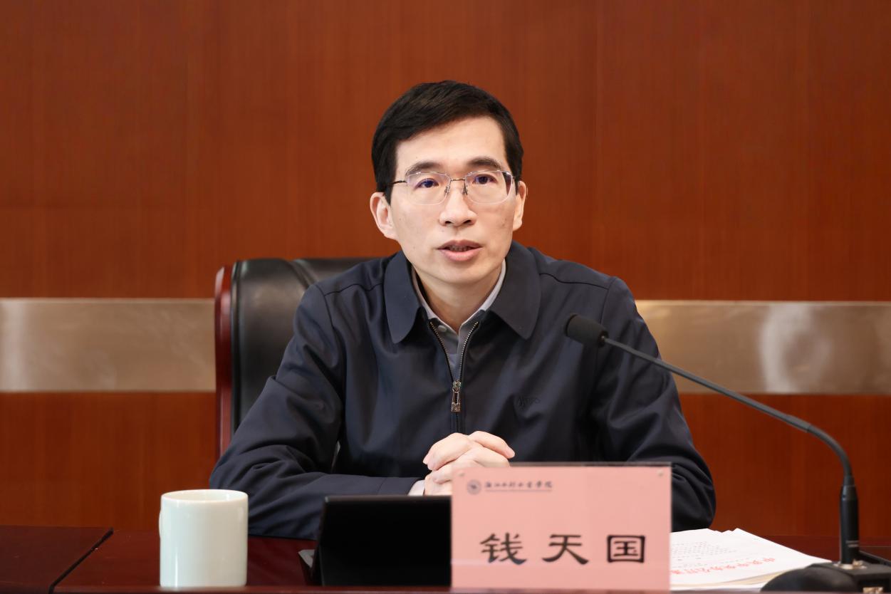 钱天国强调,学习贯彻党的二十届四中全会精神和省委十五届八次全会精神,当务之急是科学谋划学校“十五五”发展思路,明确中长期目标任务。要牢牢把握“十五五”时期“推动高等教育提质扩容”重大机遇,深入贯彻“4+1”重要要求和省委“132”总体工作部署,坚持和加强党的全面领导,深入实施新时代立德树人工程,大力实施人才强校战略,做深做透教育科技人才一体改革发展、科技创新产业创新深度融合“两篇大文章”,不断增强水利水电办学特色与核心竞争力,奋力谱写高质量有特色发展新篇章,为全面建成高水平应用型大学奠定坚实基础,为高教强省和创新浙江建设做出水院贡献。