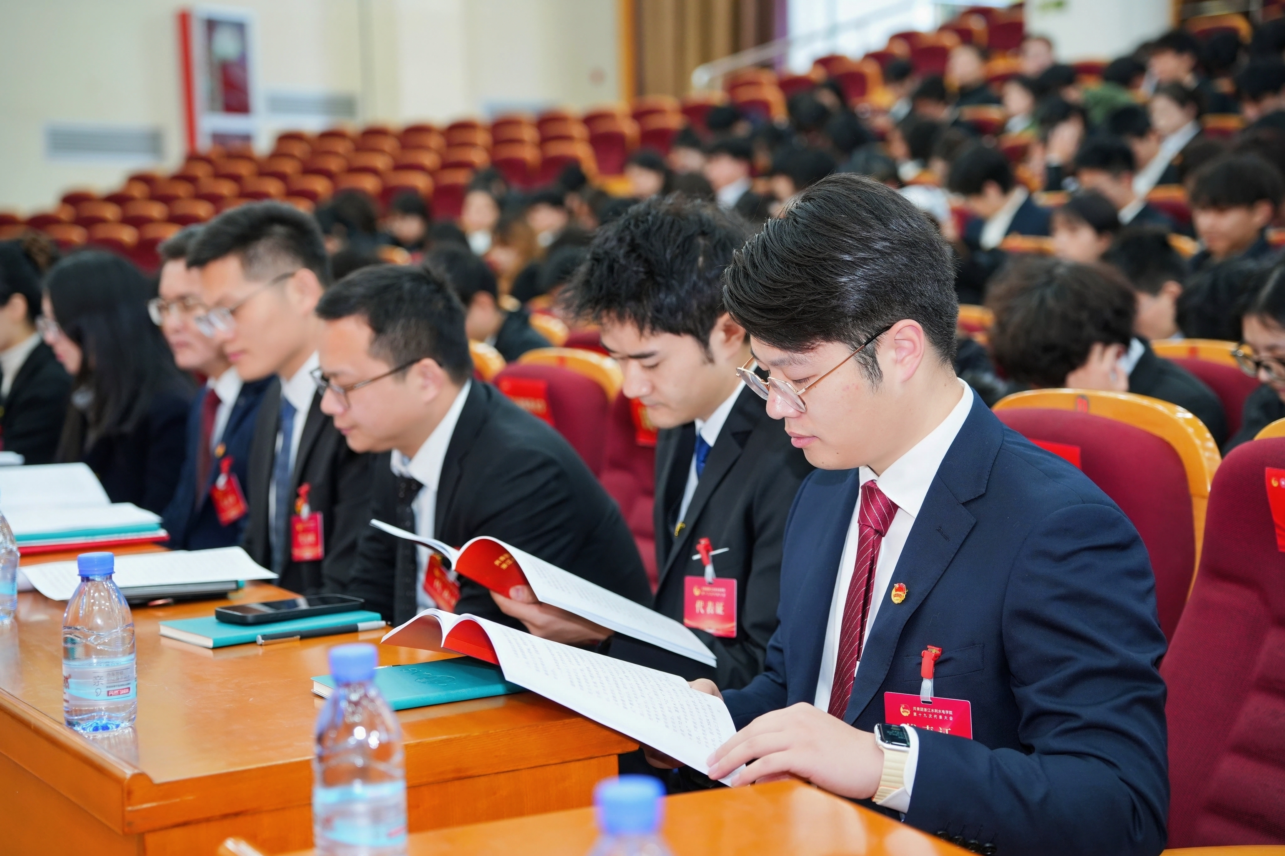 钱天国代表学校党委对大会召开表示祝贺,对五年来学校共青团工作给予充分肯定。他指出,学校各级团学组织要以此次团代会、学代会召开为新起点,团结带领广大团员和青年学生坚定理想信念、强化使命担当,为奋力谱写学校高质量有特色发展新篇章贡献青春力量。要胸怀大局,在推动学校改革发展中找准方位、担当作为。与时俱进贯彻“贺信精神”,对标学校第二次党代会确定的目标任务和“十五五”学校发展规划,将共青团工作融入落实立德树人根本任务全过程,深化“以水育人、以文化人”特色育人体系建设。要心系青年,在服务青年成长成才中凝聚力量、温暖人心。坚持青年在哪里,团组织就建在哪里,团组织的关心帮助就跟进到哪里。聚焦高素质应用型人才培养,引导同学们积极参与学科竞赛和创新实践,努力培养“会创造的人”。畅通团代会、学代会参与渠道,用心用情帮助解决青年的急难愁盼,促进青年成长成才。要固本强基,在加强自身建设中锤炼作风、树好形象。始终坚持党的领导,强化共青团干部教育培养,深入实施“青马工程”,完善“求真学院”培养体系。加强团员日常教育,引导广大团员自觉践行习近平总书记提出的“五个模范、五个带头”要求。深入推进全面从严管团治团,把“严”的标准和“实”的作风贯穿共青团工作始终。