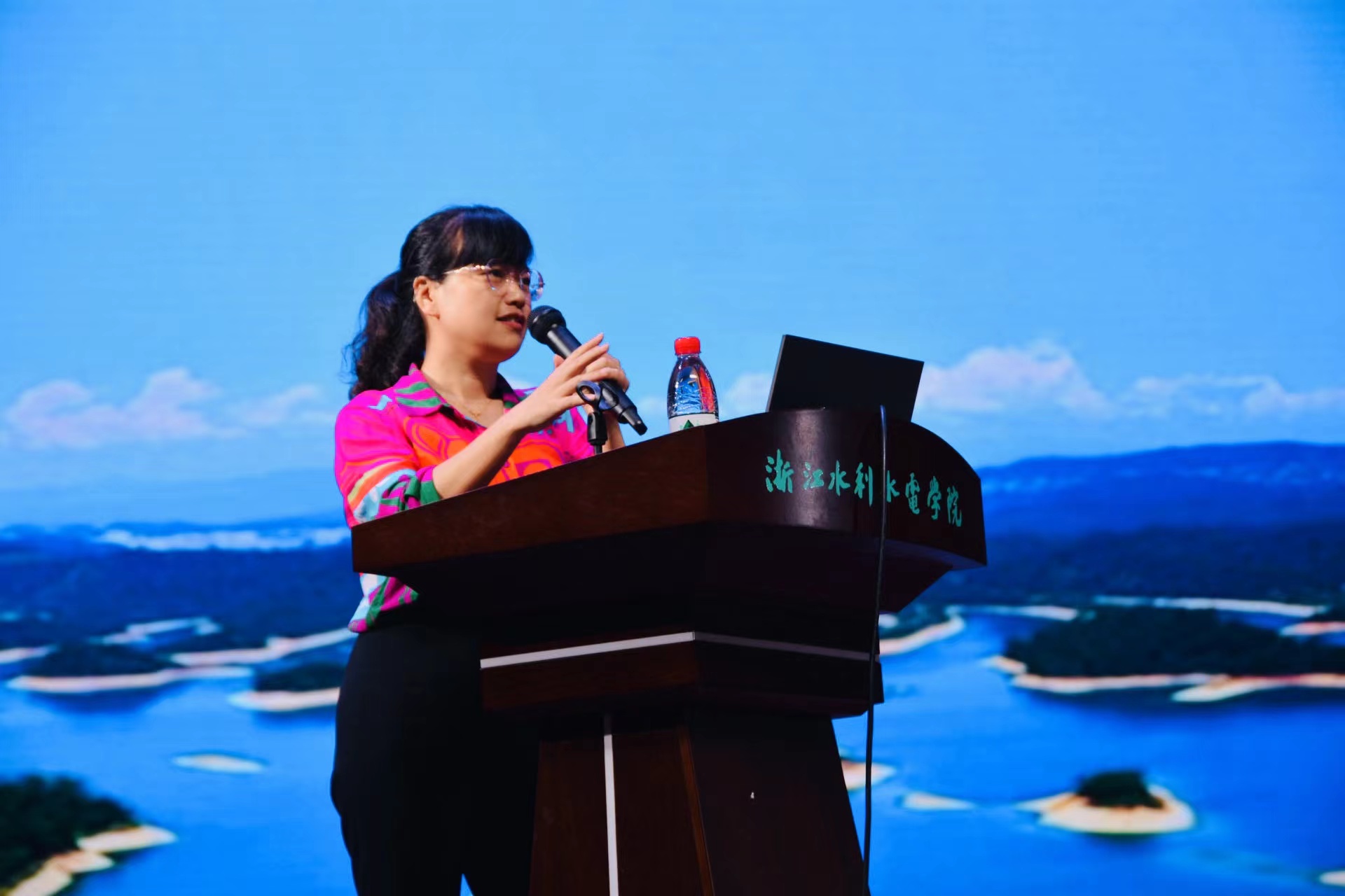为推动学习贯彻习近平新时代中国特色社会主义思想主题教育走深走实,喜迎学校70周年校庆,6月7日下午,由省水利厅主办,浙江水院水利与环境工程学院承办的“听最美人物讲思想暨最美浙江人·最美水利人”先进事迹报告会在浙江水院南浔校区举行。浙江省首届“最美浙江人·最美水利人”、浙江水院水工03-3班校友姜丽君回到母校作专题报告。