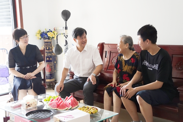 在与金浩天及其家长的亲切交谈中,陈光亭介绍了学校和专业有关情况,当得知金浩天家里祖孙三辈都有人从事电力行业,他也立志从事电力工作并积极报考水院时,陈光亭鼓励其继续保持良好的学习状态,认真规划大学生活,提升学识、开阔视野,善用时间、保持自律,勤勉学习、锤炼本领,平衡好学习和生活,努力成长为能担重任的时代新人,学成后为浙江电力事业做出自己的贡献。陈光亭表示,金秋十月学校将迎来70周年校庆,欢迎家长们到学校参观,同享喜悦。