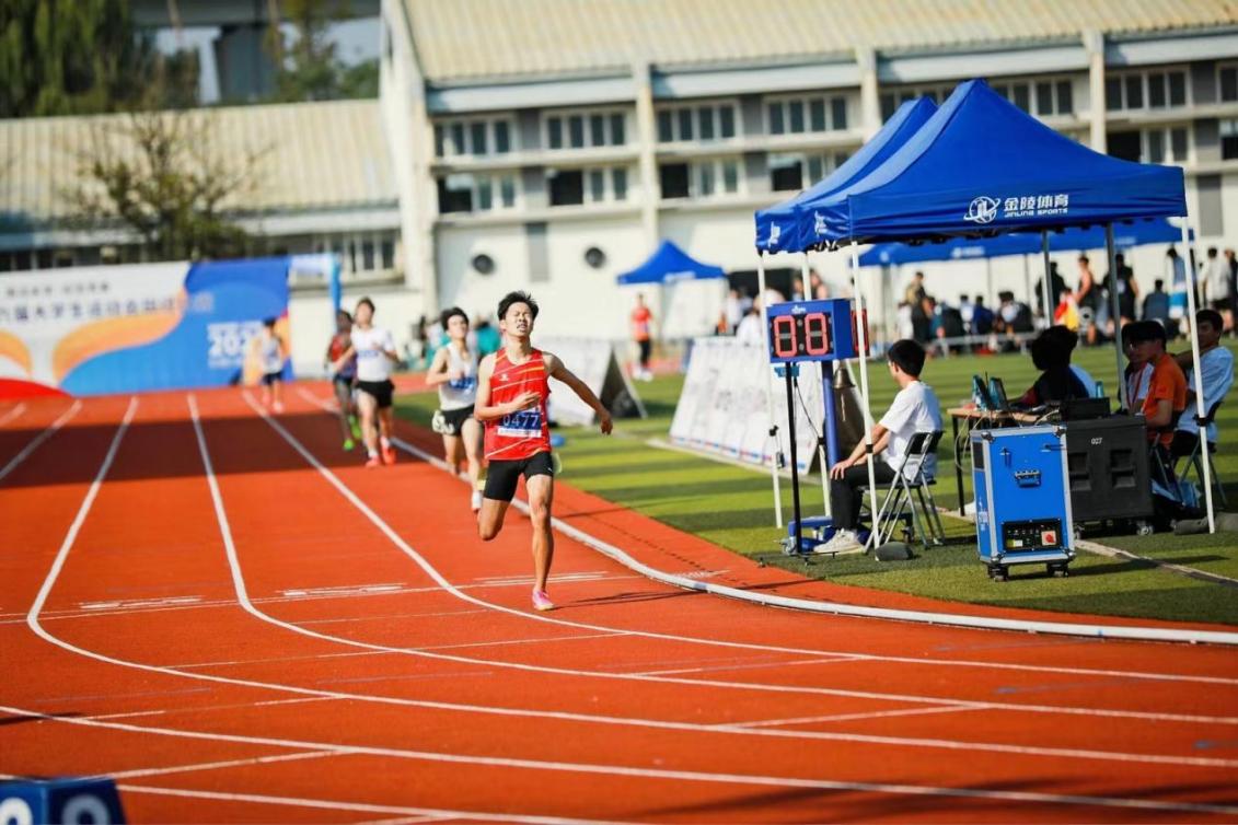 首日举行的跳高项目,测市学院胡枫同学在一众强敌劲手中夺得冠军并刷新校运会纪录,为我校揽进首枚金牌,这也是本次大运会田径比赛的首枚金牌。经管学院杨骁同学夺得铅球项目第一名,为我校夺得第二枚金牌。测市学院童乐同学取得400米栏项目第五名,刷新自己的校运会纪录;水环学院赵百明同学取得100米第六名;机械学院周家杰同学取得800米项目第七名。