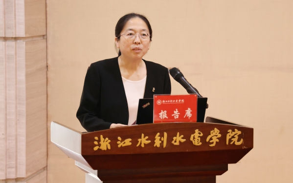 范波芹向学校建校70周年致以诚挚的祝贺。她指出,习近平总书记高度重视水利工作和科技创新工作,水利部深入贯彻落实国家创新驱动发展战略,对水利科技创新提出了更高要求。省委省政府以“三个一号工程”为抓手,强力推进创新深化改革攻坚开放提升。当前,我省正处在加快水利现代化建设新征程中,亟需以科技创新第一动力推进新阶段水利高质量发展。浙江水院水科学研究院正式揭牌,充分体现了学校的责任担当,标志着我省水利科技创新再添新力量,在加快打造我省水利科技创新高地,推动水利高质量发展中又迈出了坚实的一步。学校要提高政治站位,坚持以高质量有特色谋篇布局;要聚焦行业发展,为水利高质量发展提供智力保障;要凝聚多方之智,打造具有水利特色的科创平台。水科学高端论坛的顺利举办和水科学研究院的揭牌成立,是学校乃至整个浙江水利发展进程中的一件大事和喜事,希望大家以严谨科学的专业精神,共同谋划水利科技创新的新思路,激发水利科学研究的新动能,推动水利合作交流的新格局。
