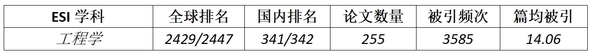 据科睿唯安(Clarivate)2024年3月发布的最新一期《基本科学指标数据库》(Essential Science Indicators,简称ESI)统计数据显示,我校工程学(Engineering)首次进入ESI全球排名前1%,标志着此学科进入国际高水平学科行列。具体表现如下: