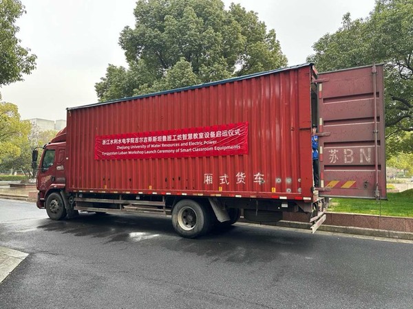 3月18日,“吉尔吉斯斯坦鲁班工坊”智慧教室设备启运仪式在学校钱塘校区举行。承载着各界嘱托与期许的教学设备将从美丽的人间天堂杭州,运往吉尔吉斯斯坦首都比什凯克。校党委书记钱天国、校长万健,副校长李政辉,设备捐赠方北京超星集团浙江区总经理郑韬等出席仪式并剪彩。李政辉主持仪式。钱天国宣布“‘吉尔吉斯斯坦鲁班工坊’教学设备正式启运”。校企双方携手见证设备启运,标志着“吉尔吉斯斯坦鲁班工坊”建设进入快车道。
