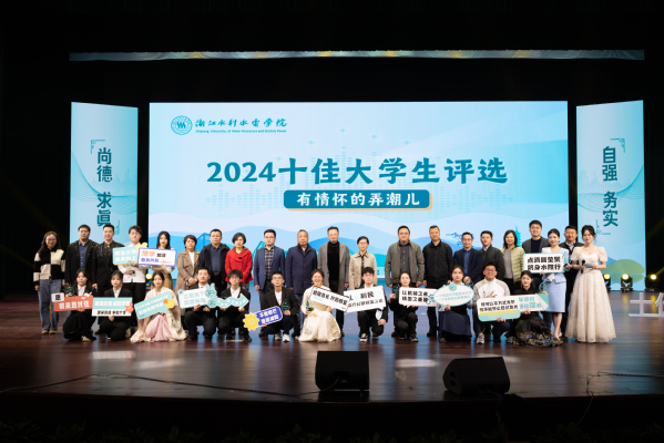 3月27日晚,以“做有情怀的弄潮儿”为主题的浙江水利水电学院2024年“十佳大学生”评选大会在南浔校区大剧院举行。校党委副书记唐远彤,相关职能部门负责人、二级学院学生工作负责人等出席。本次活动由校党委学工部主办。